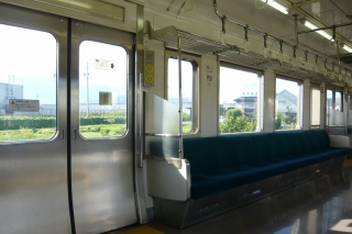UV・IRカットガラスで、車窓の景色が緑がかっています